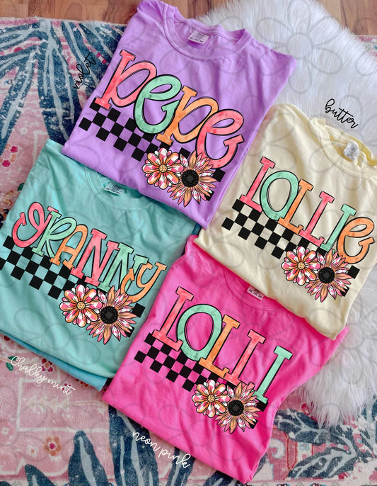 Checkered Flower Names (Multiple Options) DTF Transfer