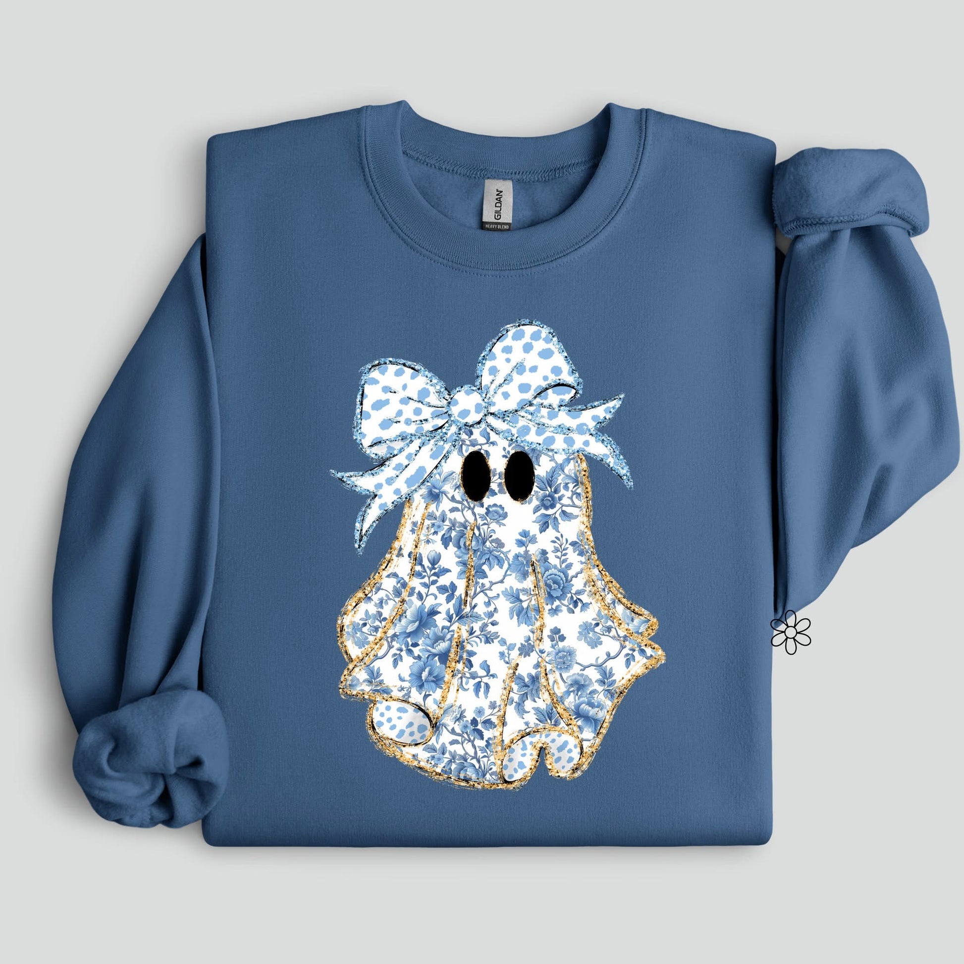 Blue Floral Gold Ghost DTF Transfer Only