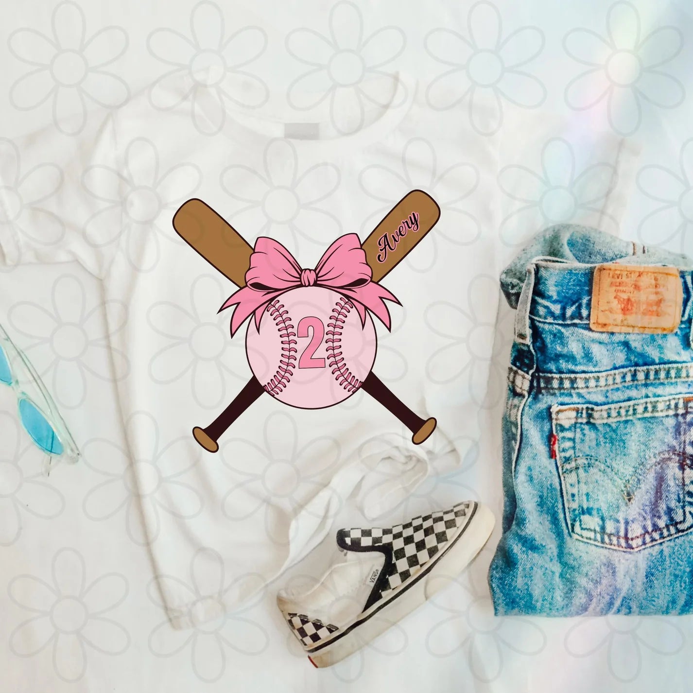 Pink Custom Name & Number Coquette Bat DTF Transfer