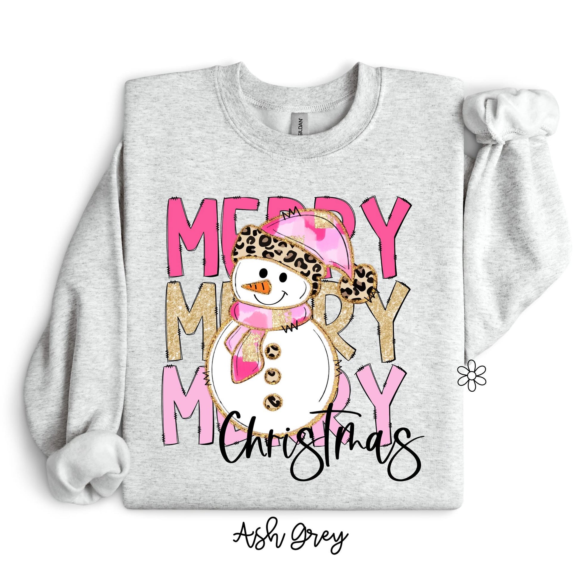 Pink Leopard Merry Christmas Snowman DTF Transfer