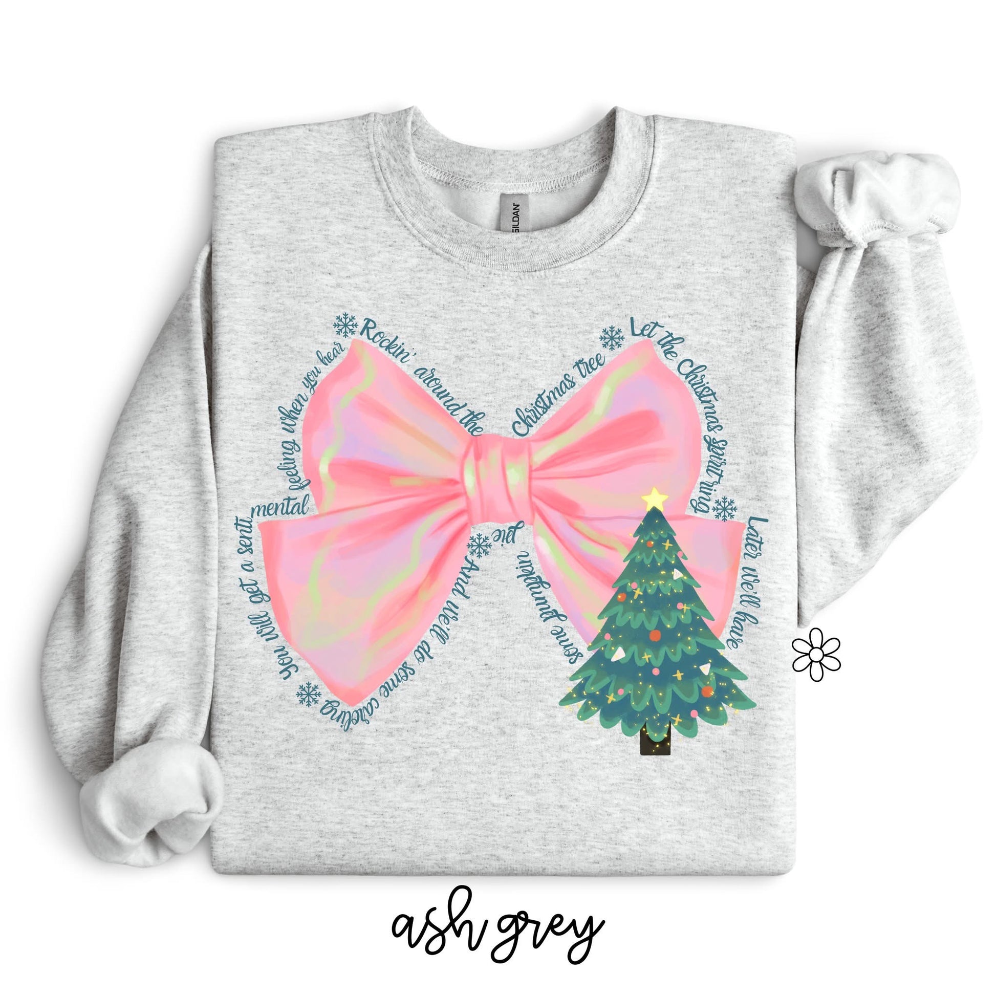 Rockin Around The Christmas Tree Pink Bow DTF Transfer