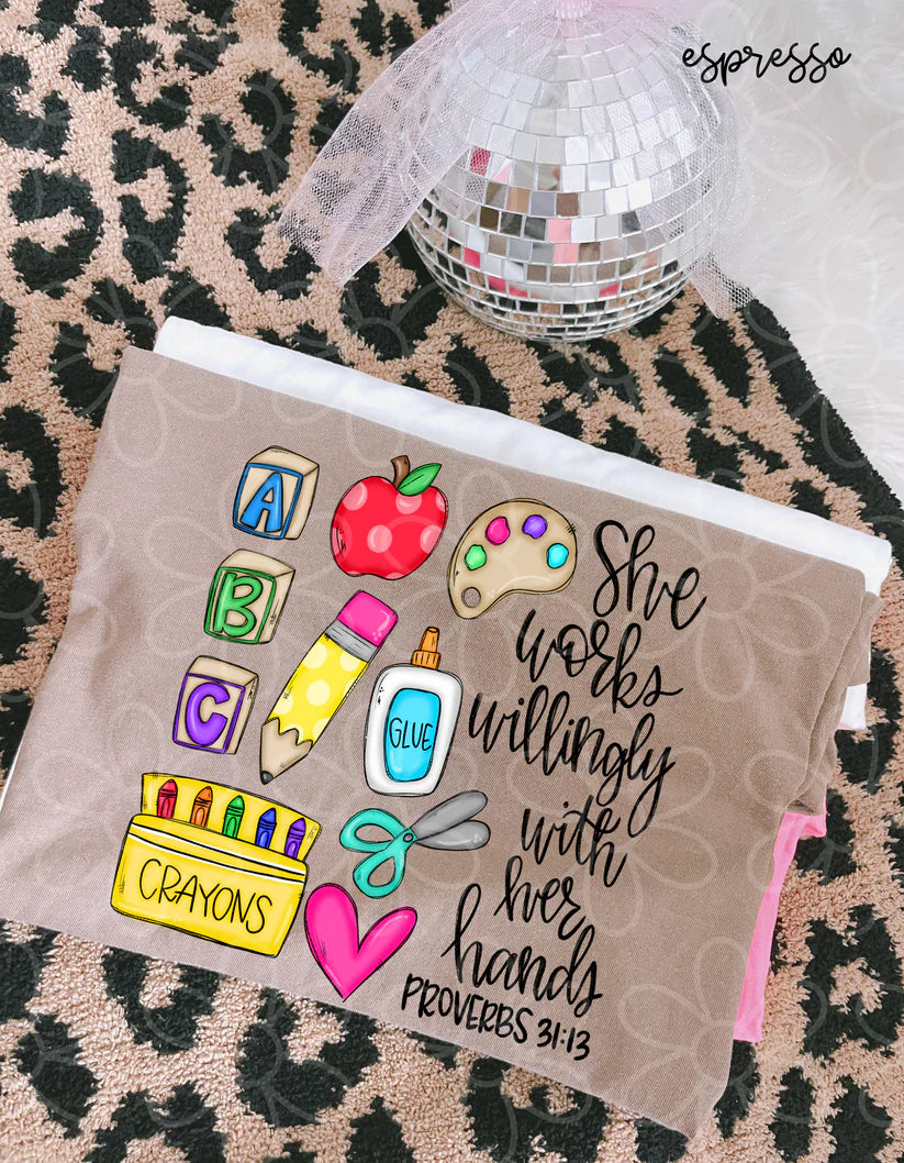 Teacher She Works Willingly With Her Hands DTF Transfer